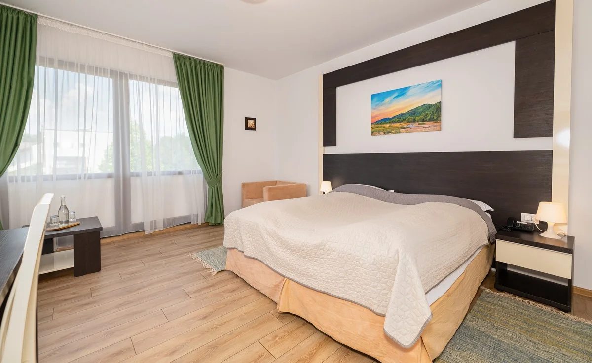 Dispunem în total de 15 camere duble superioare, 1 suită familială și 1 suită cu jacuzzi dublu.